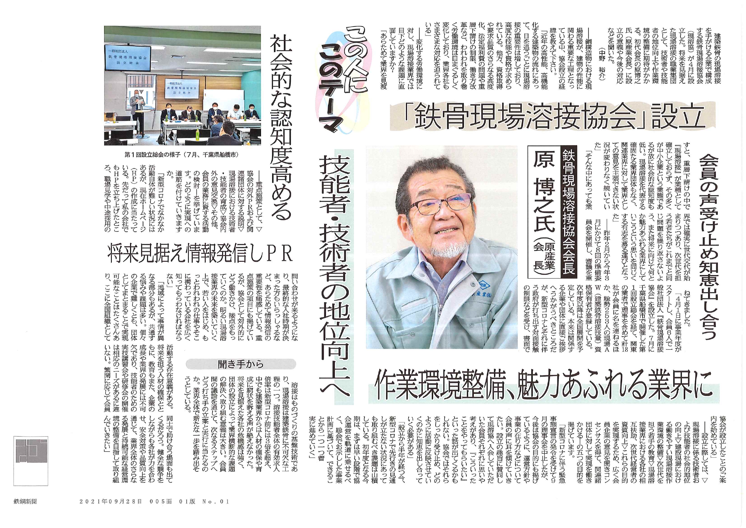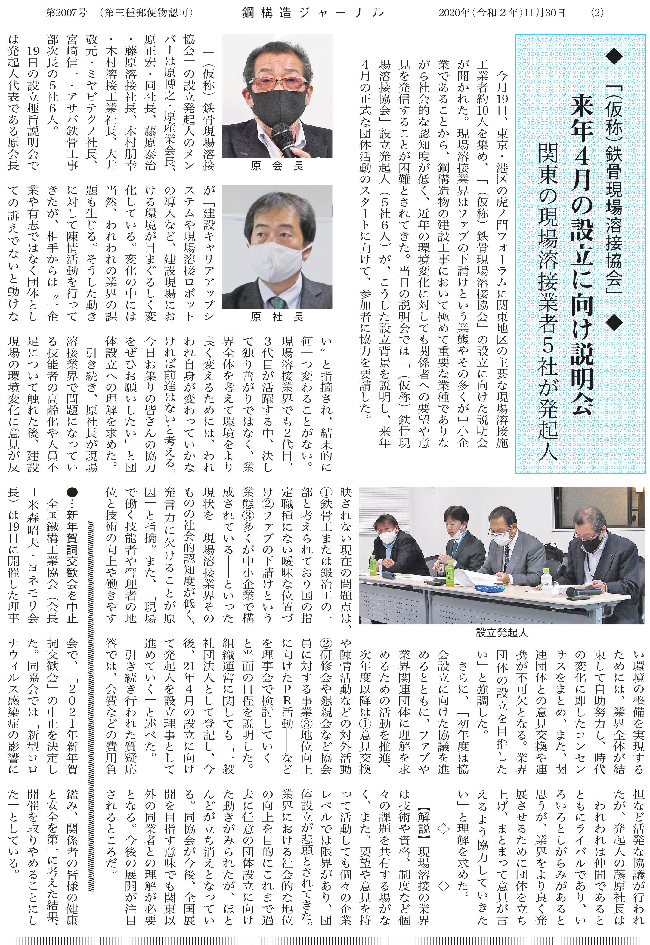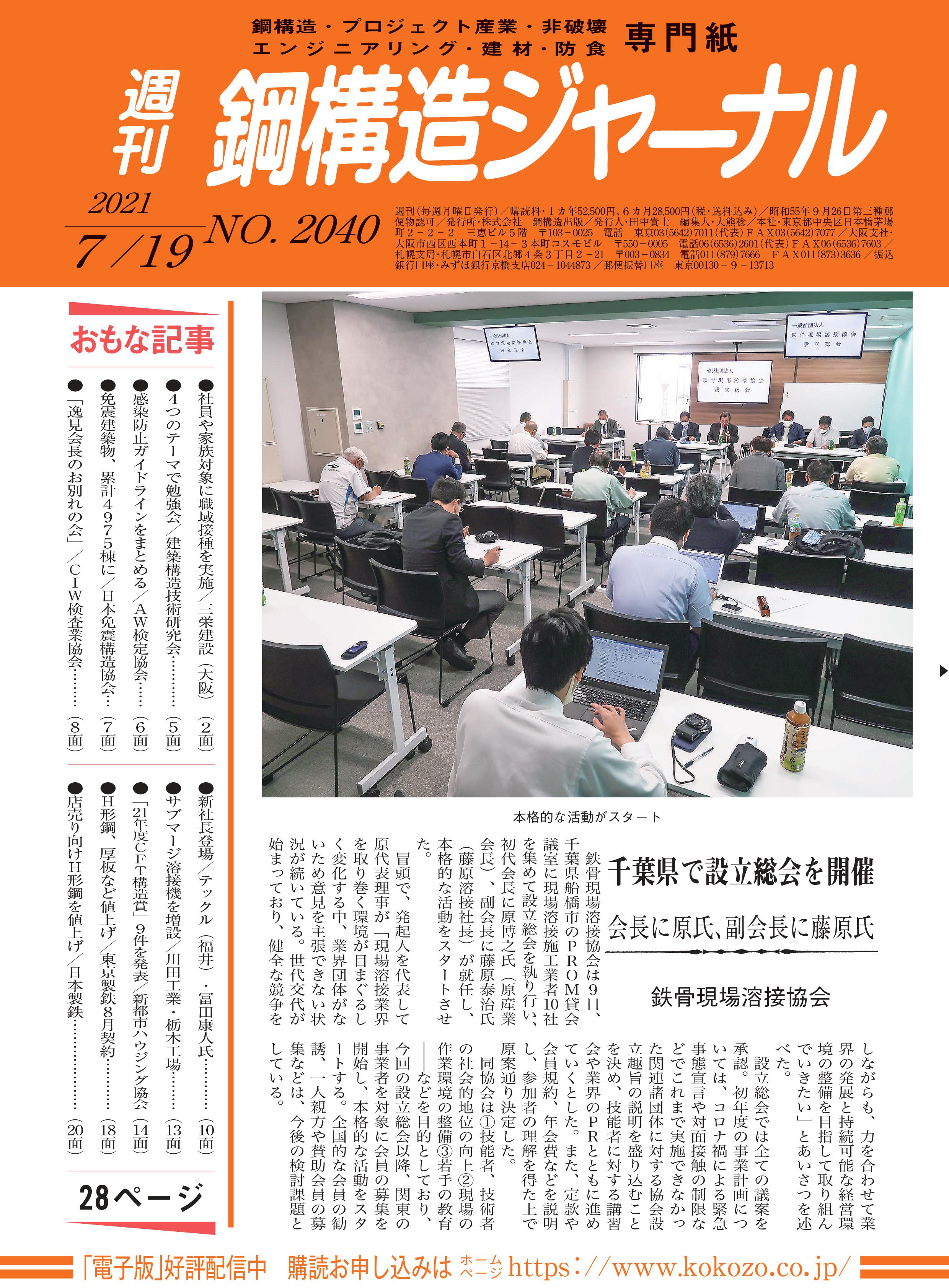 週刊鋼構造ジャーナルに設立総会が掲載されました。